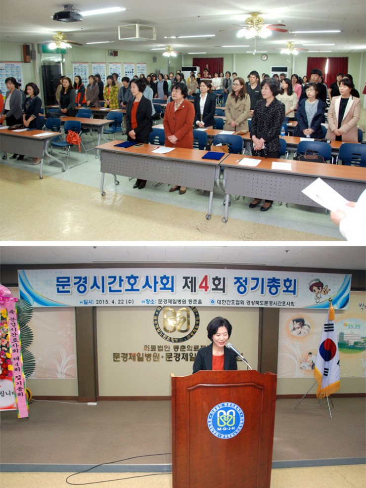 130여명의 회원들이 모여 지난 2014년을 결산하고 2015년 사업 및 예산심의를 하는 자리였다. 문경제일병원 김기은 수간호사의 사회로 1부 개회식이 진행되었고, 2부에서는 문경제일병원 정신건강의학과 이양현 과장의 스트레스 관리에 대한 특강이 있었다.