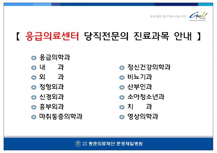 <응급의료센터 당직전문의 진료과목 안내> 페이지 정보 작성자 문경제일병원 작성일12-09-27 13:27 조회22,365회 댓글0건 관련링크 이전글 다음글 목록 본문 . 댓글목록 등록된 댓글이 없습니다. 이전글 다음글 목록