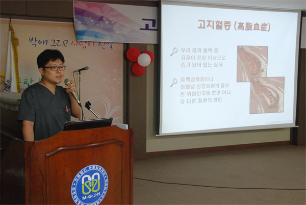 이날 강연은 100여명의 지역주민들이 참석한 가운데 문경제일병원 이준영 내과장의 ‘고지혈증의 예방과 치료’라는 주제로 진행되었으며, 강좌에 앞서 문경제일병원은 참석자들을 대상으로 혈압 및 당뇨 측정을 무료로 실시하였다. 또한, 강좌가 끝난 후에는 소정의 사은품도 나눠주었다.