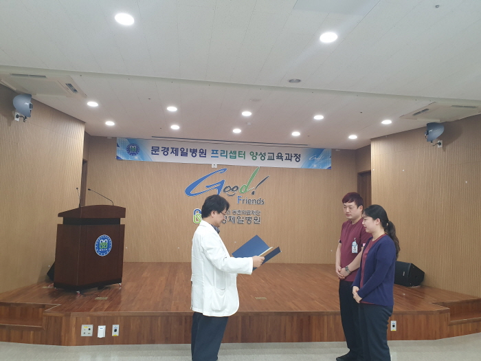문경제일병원 간호본부(본부장 박선신)에서는 2020년 1월 17일(금) 동춘홀에서 제19차 프리셉터 이수증 수여식을 시행하였다. 19차를 맞이하는 문경제일병원 프리셉터 과정은 임상경력 3년 이상 해당부서 1년 이상의 경력을 기본으로 타의모범이 되는 우수한 간호사들로 각 병동, 응급의료센터, 중환자실, 수술실, 인공신장실 등에서 선발된 경력간호사들이 22시간의 교육 및 평가과정을 거쳐 문경제일병원 프리셉터로 임명되었다. 19차 프리셉터 9명과 기이수자 17명 포함하여 총 26명의 임명된 프리셉터들이 2020년 신입간호사(프리셉티)들에게 프리셉터쉽 과정에 함께하여 임상간호사의 역할모형을 제공하고 현장에 빨리 적응할 수 있도록 이론 및 실기교육을 담당하고 문경제일병원의 간호전통을 계승, 발전시켜나가는데 기여할 예정이다.