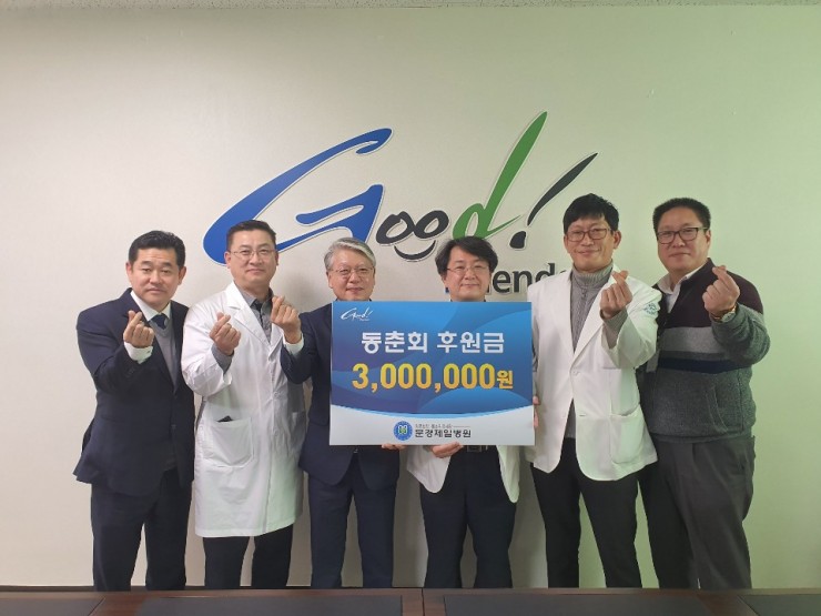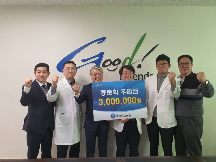 의료법인 동춘의료재단(이사장 류창수), 문경제일병원(병원장 김상헌)은 2월 4일 동춘회(회장 이상철)로부터 문경제일병원 사회복지사업운영위원회에 300만원을 기탁 받았다.