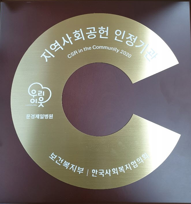 문경제일병원은 꾸준한 나눔과 활동을 인정받아 2019년에는 사랑의 열매 시상에 기부 분야 금상을 수상하기도 했다.
