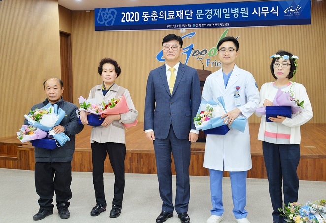 동춘의료재단 문경제일병원은 2일 아침 7시20분 건강증진센터 6층 동춘홀에서 2020 경자년을 맞아 시무식을 가졌다. 이번 시무식은 2019년 우수사원 시상식, 장기근속사원포상, 제13회 QI경진대회 시상식과 함께 류창수 이사장과 김상헌 병원장의 시무사 순으로 진행됐다.