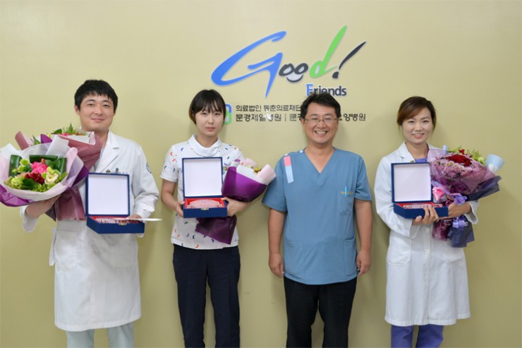 수상은 병원의 발전과 보건의료서비스 향상을 위해 노력한 1중환자실 김은주 간호조무사가 최우수사원, 물리치료실 이상수 물리치료사와 11병동 노동희 간호사가 우수사원으로 선정되어 각각 상패와 꽃다발 그리고 소정의 상금을 받았다.