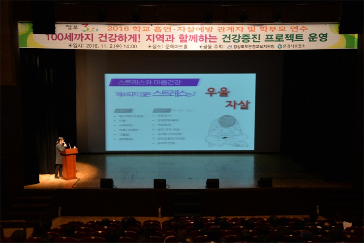 문경제일병원 정신건강의학과 박경혜 과장은 11월 2일 오후 2시 초ㆍ중ㆍ고등학교 교감, 생활지도교사, 보건(담당)교사, 학부모 등 150여명이 참석한 가운데 문희아트홀에서 ‘청소년 자살예방'에 대한 강연을 가졌다.