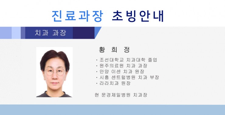 <진료과장 초빙안내 - 치과 (황희정)> 페이지 정보 작성자 문경제일병원 작성일25-02-27 10:04 조회3,018회 댓글0건 관련링크 이전글 다음글 목록 본문 . 댓글목록 등록된 댓글이 없습니다. 이전글 다음글 목록