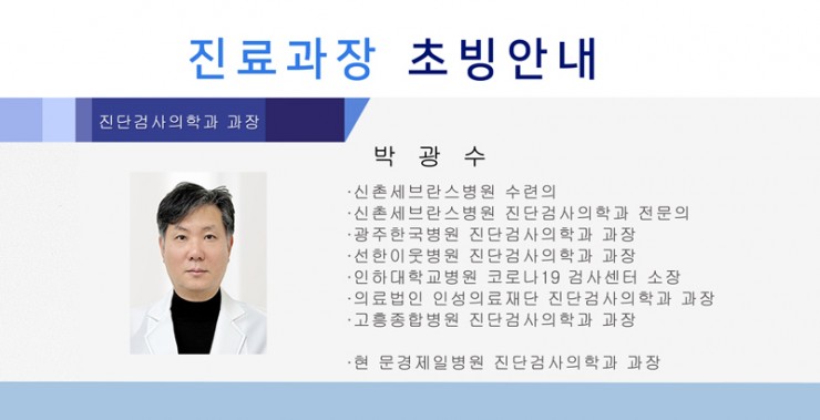 <진료과장 초빙안내 - 진단검사의학과 (박광수)> 페이지 정보 작성자 문경제일병원 작성일25-10-31 09:01 조회795회 댓글0건 관련링크 이전글 다음글 목록 본문 . 댓글목록 등록된 댓글이 없습니다. 이전글 다음글 목록