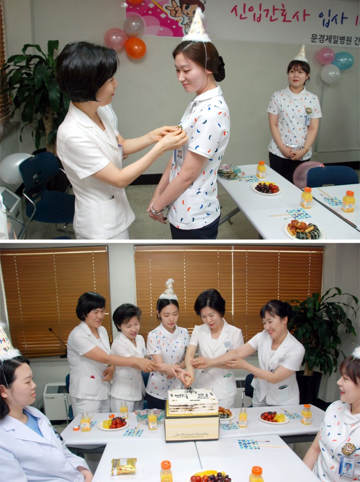 문경제일병원 간호부 간호봉사회 주최로 2015년도 신입간호사들을 위한 입사 100일 기념 잔치가 소회의실에서 개최되었습니다.