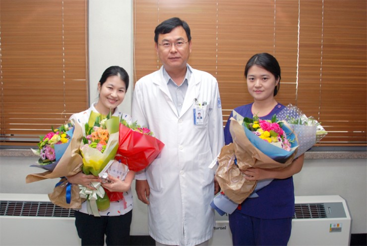 수상은 병원의 발전과 보건의료서비스 향상을 위해 노력한 5병동 오은영 간호사가 최우수사원, 주사실 김은혜 간호사가 우수사원으로 선정되어 각각 상패와 꽃다발 그리고 소정의 상금을 받았다.
