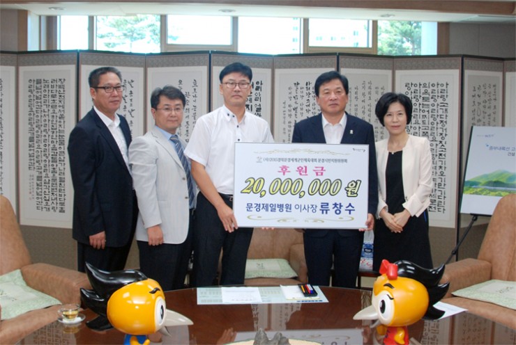 문경제일병원(이사장 류창수)은 지난 9일 문경시청 접견실에서 문경시민지원위원회(공동위원장 김지훈, 주대중, 현한근)에 2015경북문경세계군인체육대회 성공개최를 위해 2,000만원의 후원금을 전달했다.
