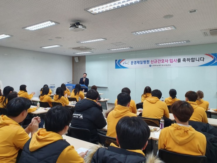 동춘의료재단 문경제일병원 간호본부(본부장 박선신)는 2월 04일 ~ 05일 1박 2일간 2020년도 신규간호사 입문교육을 서울대학교병원 인재원에서 실시하였다. 교육에 참석한 신규간호사 28여명은 류창수 이사장의 환영사와 김상헌 문경제일병원장의 환영사, 박선신 간호본부장의 병원개요, 간호본부 개요, 기본간호술, 심폐소생술(이론/실기), 투약간호(이론/실기) 등의 신규직원이 갖추어야 할 기본소양과 필수직무교육, 조별과제 토의, 윷놀이 등 이론과 실전교육의 다양한 프로그램으로 진행되었다. 류창수 이사장은 환영사에서 “문경제일병원은 지역 내, 유일한 종합병원이기에 책임감을 갖고 환자 중심의 보다 나은 진료서비스 향상으로, 신뢰 할 수 있는 병원을 만들기 위해 노력하고 있으며, 병원 종사자들이 각자의 자리에서 적응을 잘 할 수 있도록, 병원환경과 직원복지를 더욱더 향상 시키겠다“고 하였다.