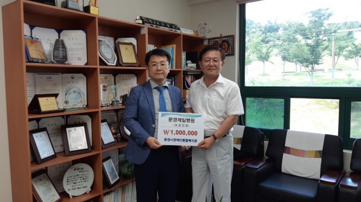 의료법인 동춘의료재단 (이사장 류창수), 문경제일병원(병원장 김상헌) 사회복지사업운영위원회는 지난 8월 29일 문경시장애인종합복지관을 방문하여 성금 100만원을 전달했다.