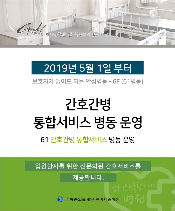 <간호간병 통합서비스 운영 안내> 페이지 정보 작성자 문경제일병원 작성일19-04-18 09:17 조회6,926회 댓글0건 관련링크 이전글 다음글 목록 본문 . 댓글목록 등록된 댓글이 없습니다. 이전글 다음글 목록