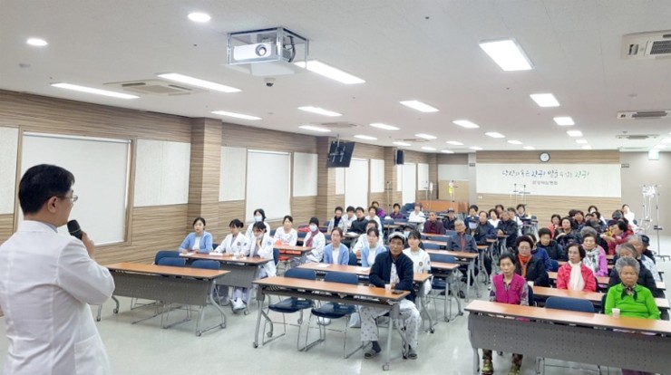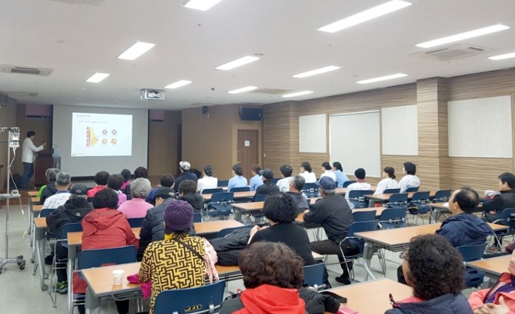 이날 강연은 70여명의 지역주민들이 참석한 가운데 문경제일병원 여경준 외과장의 ‘유방질환관리’라는 주제로 진행되었으며, 강좌에 앞서 참석자들을 대상으로 혈압 및 혈당 측정을 무료로 실시하였다. 또한, 강좌가 끝난 후에는 소정의 사은품도 나눠주었다.