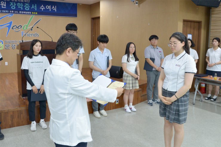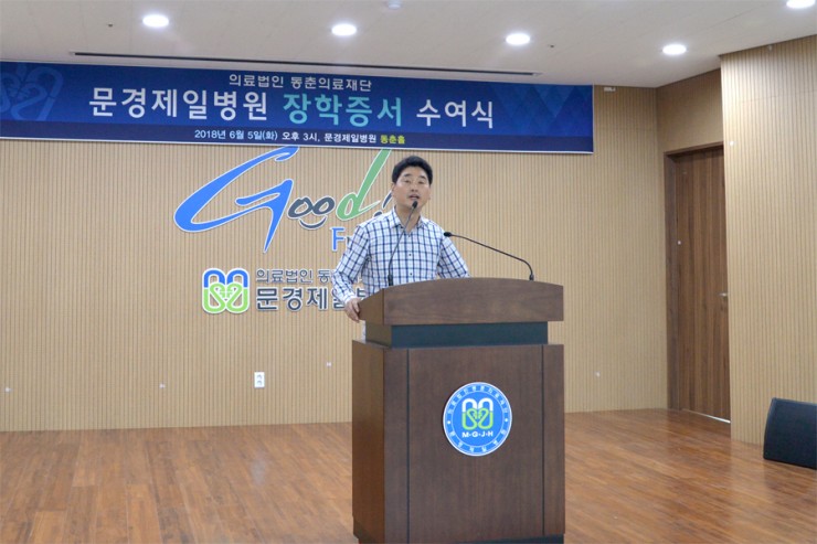 동춘의료재단 문경제일병원(이사장 류창수)은 6월 5일 오후 3시 건강증진센터 6층 동춘홀에서 지역 11개 중·고등학교 장학생과 담당교사를 초청하여 ‘동춘의료재단 문경제일병원 장학증서 수여식’을 개최했다.