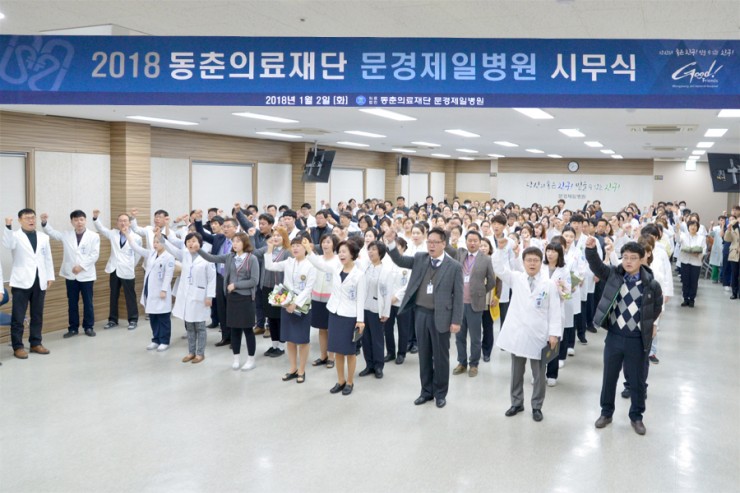 동춘의료재단 문경제일병원은 2일 아침 7시20분 건강증진센터 6층 동춘홀에서 2018 무술년을 맞아 시무식을 가졌다.