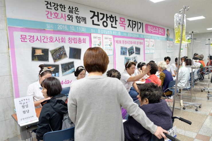 문경시간호사회(회장 박선신)는 10월 11일(화) 오후 1시~5시까지 ‘건강한 목 지키기’를 주제로 문경제일병원 본관 2층 로비에서 환자와 보호자, 내원객, 지역주민을 대상으로1004Day 간호봉사활동을 실시했다.