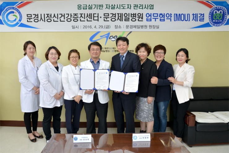 4월 29일 문경제일병원과 문경시정신건강증진센터{센터장 이양현)는 문경제일병원 별관2층 원장실에서 ‘응급실기반 자살시도자 관리사업’에 관한 협약을 체결하였다.