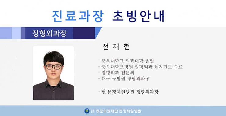 <진료과장 초빙안내 - 정형외과 (전재현)> 페이지 정보 작성자 문경제일병원 작성일23-03-03 09:08 조회6,447회 댓글0건 관련링크 이전글 다음글 목록 본문 . 댓글목록 등록된 댓글이 없습니다. 이전글 다음글 목록